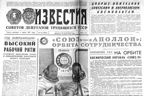 Советские и зарубежные газеты писали о полете в самом восторженном духе (илл. 3). Шли радио- и телерепортажи о теплых встречах и совместной работе космонавтов и астронавтов на орбите.
