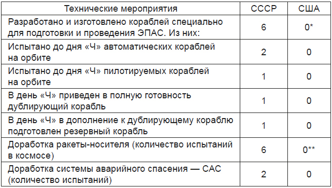 Содержание таблицы указывает на то, что с советской стороны готовился реальный космический полет корабля «Союз-М», а с американской стороны проводилась имитация участия «Аполлона» в якобы совместном полете.