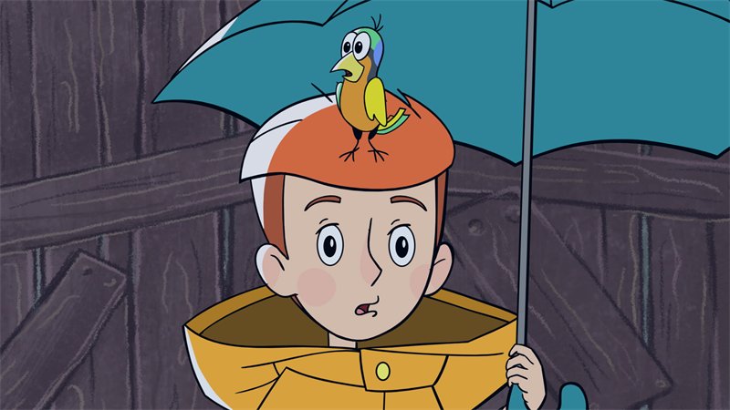 Он взял зонтик, надел сапоги и пошёл в коровник.