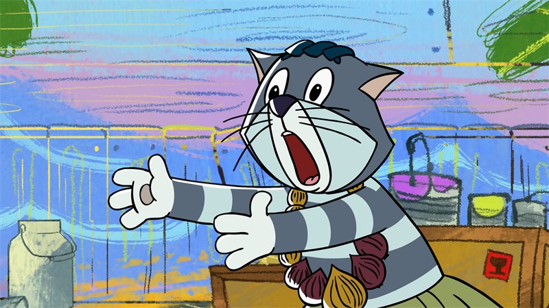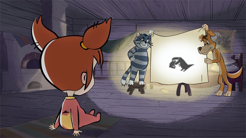 И только Матроскину было не до веселья. Он стоял на табуретке с высоко поднятыми лапами и держал импровизированный экран за один конец. А Шарик – за другой.