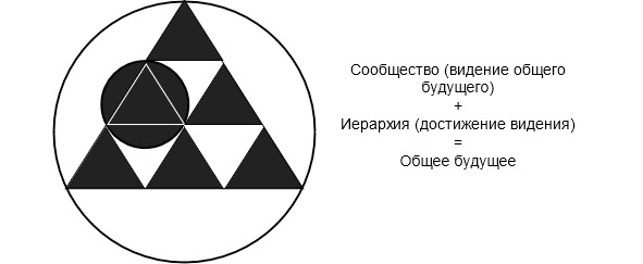 Участники иерархии чувствуют цель своею, если участвовали в её выработке (в сообществе) и были признаны.