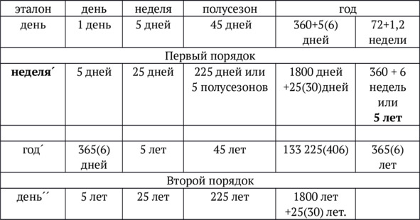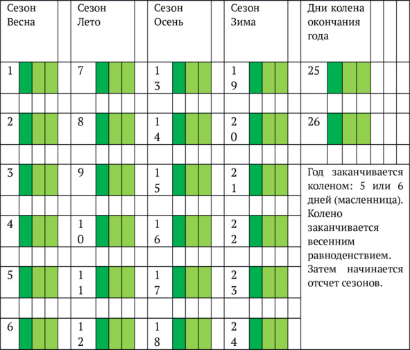 Год – 365 (6) дней / 360 дней 4-х сезонов +5 (6) дней колена.