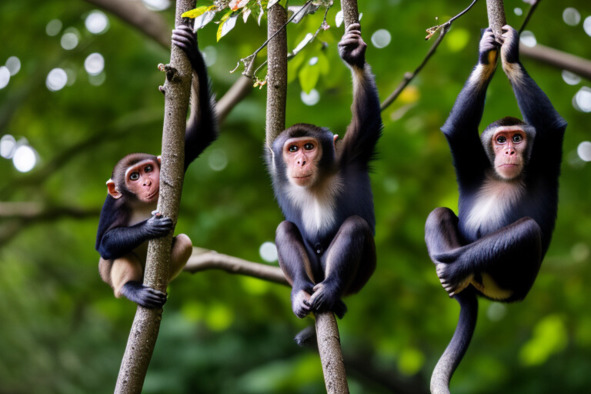 С крон деревьев свисали мохнатые зверушки, которые не сидели на месте, а быстро-быстро перепрыгивали с ветки на ветку.