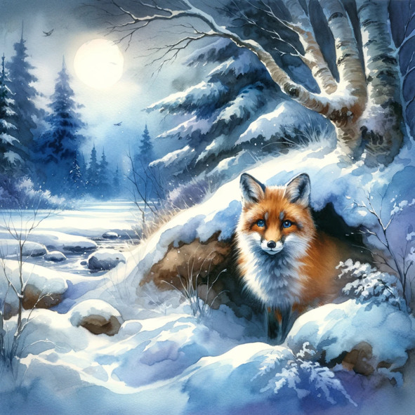 Смотрят, а там полынья незамерзшая, и рыба в ней плещется, воздухом дышит. Видимо, мужики подледным ловом тут днем занимались. Стали Волк и Лиса лапами рыбу из проруби выхватывать, да на лед кидать. Натаскали рыбы столько, что и не съесть им всем зараз! Что делать? Бросить-то жалко, да и есть уже невмоготу.