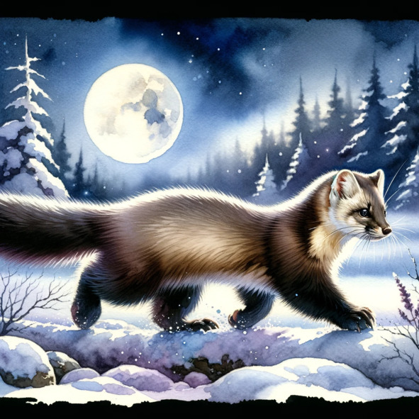 Наполнили звери мешки рыбой. Самый большой по земле себе в логово Волк потащил, поменьше Лиса в свою нору уволокла. Сова взяла тот мешок, который смогла по воздуху унести. Ну а самый малый Куница себе выбрала: по росту, да по силе, чтобы до своего дома в дупле на дереве дотащить смогла.