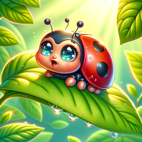 И вдруг на стволе одного большого дерева он увидел маленького жучка. Тот был красного цвета с черными точечками. Жучок очень медленно поднимал и опускал свои маленькие крылышки, будто с трудом расправляя их.