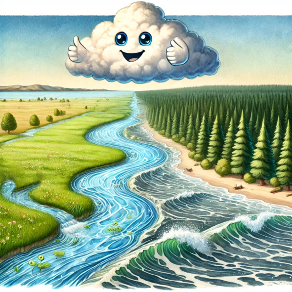 И правда, оно осталось, будто дежурный на посту, в устье Реки, которая его породила. Шли годы. Облачко и Река сдружились так сильно, что стали будто одно неразлучное целое.