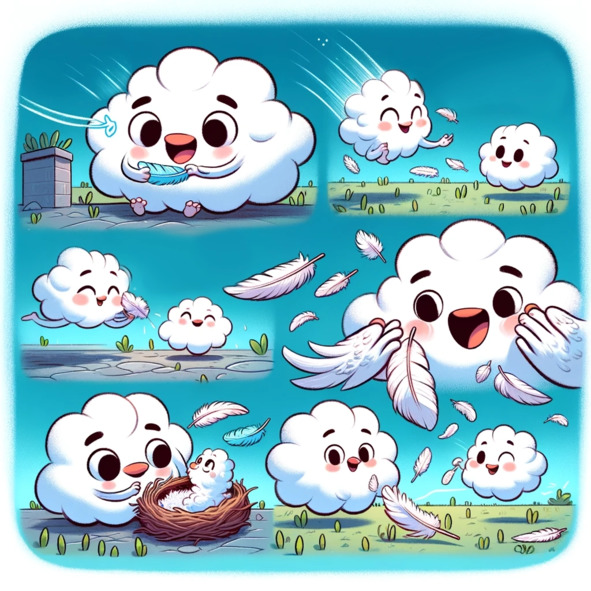 «Научи меня быть нежным и аккуратным» – попросил маму Новый Ветерок. Мама согласилась. Они тренировались целый день. Они залезали во все более маленькие и узкие щели. Мама учила его шевелить только что проклюнувшиеся травинки, не срывая и не ломая их. Они нашли перья и пух в гнезде улетевшей уже птицы. Сначала Новый Ветерок учился поднимать и удерживать в воздухе большие, а потом и маленькие перья. Наконец, он смог также управлять полетом пушинок.