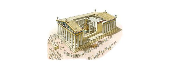 Шахс, Дорик ва Ион орденларининг моҳирона комбинацияси. Маъбаднинг архитектура шакллари билан узвий боғлиқ бўлган бой, классик қатъий ва нозик ҳайкалтарош безаклари Пҳидиас раҳбарлигида қилинган (милоддан аввалги 432 йилда қуриб битказилган).