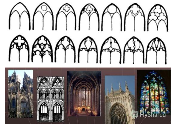 Енгиллик, вазнсизлик, очиқ ишларнинг таассуротлари меъморий шаклларнинг ўзига хос пластиклиги билан ҳам боғлиқ: устунларга ўхшамайдиган таъкидланган вертикал таянчлар, балки юпқа устунлар тўпламлари, лансетли камарлар, учли чодирлар ва педиментлар, массаларни ажратиш, деталларни нозик профиллаш..