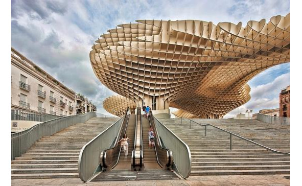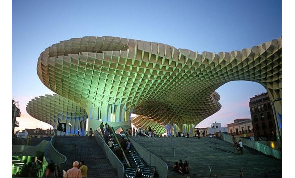 Бутун мажмуа тўрт қаватга бўлинган. Энг паст ер ости сатҳида музей (Рим ва Мавр харобалари) жойлашган. 0 даражасида (кўча даражасида) марказий бозор мавжуд. 1-даражали уйингизда – очиқ майдон тадбирлар учун, 2 ва 3-да – томоша тераслари. Футуристик дизайн «Метропол-парасол» эски бинолардан фарқ қилади. Aммо ёғоч томнинг нейтрал ёруғлик оҳанги комплекснинг ултра-замонавий дизайнини юмшатади. Олти бурчакли «соябонлар» остида майдончалар, йўлаклар, зинапоялар ва фавворалар мавжуд, пиёдалар учун ҳеч қандай бўлаклар ва бошқа тўсиқлар мавжуд эмас. Бу фуқаролар ва сайёҳларнинг дам олиши учун ноёб жой.