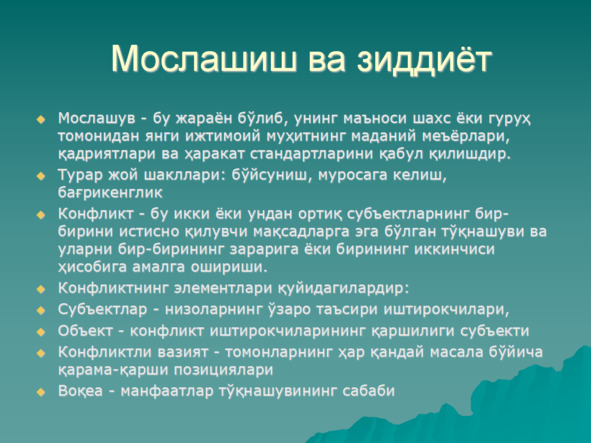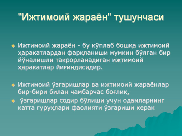 – жараёнлар ва ҳодисаларнинг умумий қоидалари аниқ бўлиши керак;