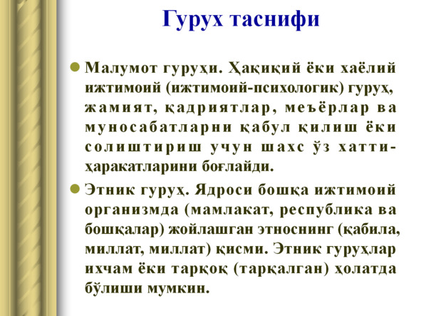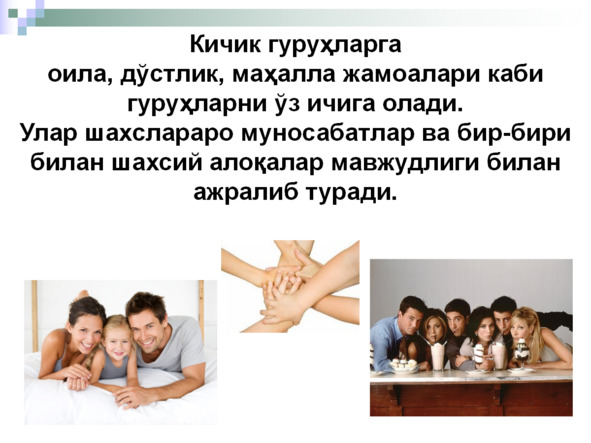 Ижтимоий гурухлар, ижтимоий жамоалар ва ижтимоий институтлар