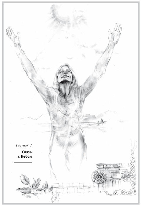 3. На следующем глубоком вдохе раскройте и поднимите руки вверх. Посмотрите на небеса (см. рис. 1), потянитесь к ним – и они ответят вам тем же. Дышите свободно, не напрягайтесь. Осознайте, что вы не одни во Вселенной и что заслужили это благословение небес. Вы можете почувствовать легкое покалывание, гудение или тепло в руках – ведь вы прикасаетесь ими к небесам и приглашаете целительные энергии космоса.
