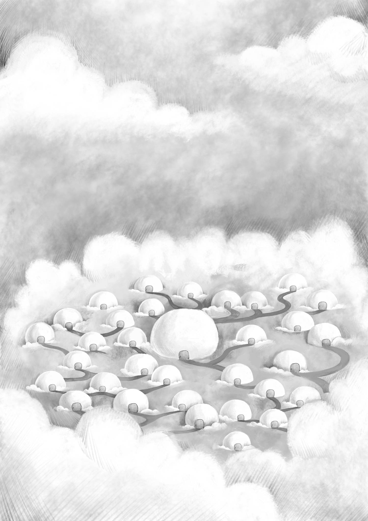 Домики были круглые. Так как другие дзунты, которые с удивлением смотрели на меня, как и дома, были белыми, вряд ли издалека кто-либо заметил бы их деревню. Облако, на котором находилась деревня, оказалось просто огромным, со всех сторон оно было окружено горообразными выступами, а деревня размещалась прямо посередине, как в долине. Деревьев или чего-то подобного, да и что-либо указывающего на растительность или ручей, не было видно (интересно, а чем они питаются?).