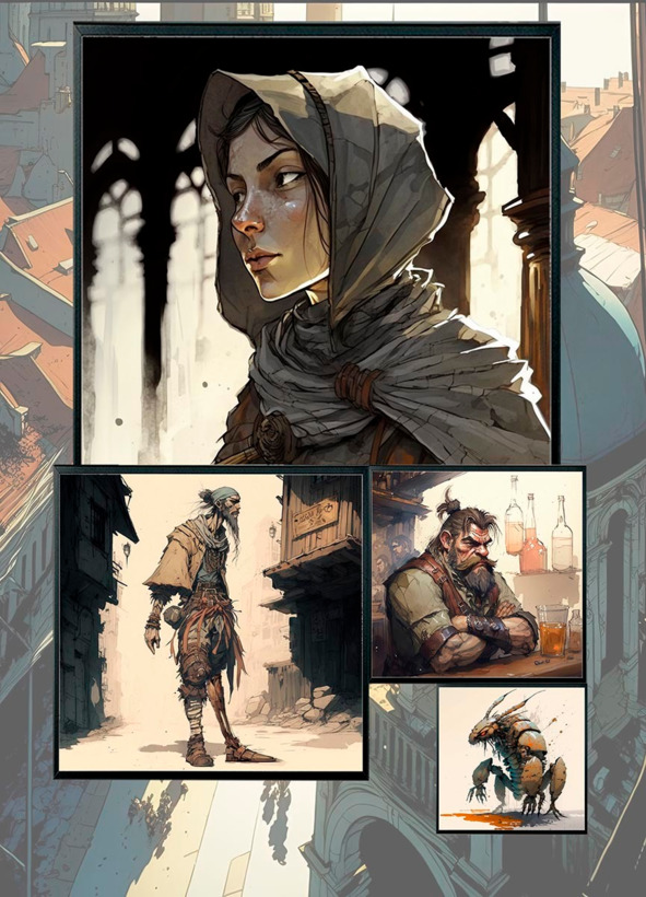 – Мой персонаж – девушка. Молодая, на вид лет шестнадцати. Невысокая, очень худая, растрёпанная, с большущими, как у совы, глазами. Любопытными и серыми! Они так и смотрят по сторонам, вбирая новые впечатления! Она немного чумазая. В тёмных спутанных волосах застряли травинки и соломинки, выдающие ночлег на караванной телеге. Она шмыгает носом, потому что слегка простудилась в дороге, и иногда украдкой вытирает его рукавом.