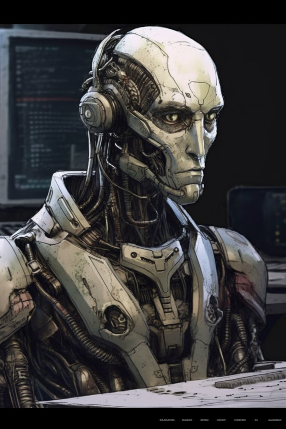 Она ожидала чего-то монументального, вроде забитого стойками с оборудованием Вычислительного Центра Коммуны, только раз в десять больше, но Алина привела её в небольшую комнатку, где перед панелью из нескольких экранов сидел в кресле… Василисе сначала показалось, что человек. Больной, старый, возможно, даже мёртвый. Но это оказался всё же робот. Странно себе представить, что робот может постареть – но этот как-то ухитрился. Мягкий пластик лица потрескался, местами обесцветился и слегка стёк вниз, создавая впечатление возрастных изменений. Волосы на голове частью выцвели, частью выпали, а частью свалялись. Линзы глаз помутнели, кисти рук потеряли форму, обтекая с металлического каркаса фаланг.