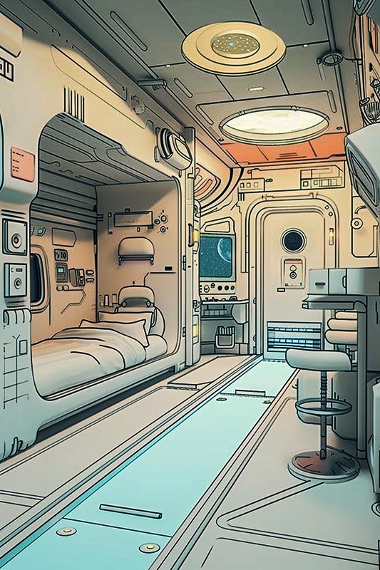 Наверное, на буксире из анекдота не было робота-уборщика. В общем, каюта старпома могла быть каютой капитанской жены или не быть – если они жили в одной. В этом случае её занимал второй помощник, а если таковой считался для буксира ненужной роскошью, то любой другой член экипажа с высоким авторитетом. Каюты обычно распределяются в экипаже по неписанному старшинству, и чем ближе к рубке, тем престижнее. Первой, разумеется, идёт капитанская, а дальше по нисходящей. Дальше всего проживают стажёры и лица к ним приравненные – например, свежие семейные пары. В семейные экипажи приходят по сложной процедуре предварительного сватовства, согласуют браки капитаны (на самом деле, конечно, их жёны), всё очень консервативно и продуманно. Смотрят и на специализацию жениха/невесты, и на то, чтобы они не оказались двоюродными родственниками, что при небольшой численности космиков вполне вероятно. Разумеется, личные симпатии участников тоже идут в зачёт, сериалов про то, как «Большая Любовь превозмогла волю капитанов», снимается предостаточно, так что не так тут просто. И если молодым уж прям очень хочется, а в оба сложившихся экипажа они по каким-то причинам не вписываются, то они всегда могут попробовать уйти на другой корабль, в постороннюю семью. И вот тогда они начинают с самой дальней каюты. Если приживутся – поднимутся в ранге, переедут поближе.