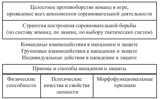 Для оптимального построения подготовки к соревнованиям необходимо знать специфические факторы, обуславливающие ее эффективность и надежность. Конечная цель соревновательной борьбы – победа. Для ее обеспечения команде необходимо решить ряд компонентов – частных задач.
