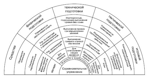 Средства и методы тренировки гандболистов с учетом видов и разделов подготовки представлены на схеме рисунка 2.