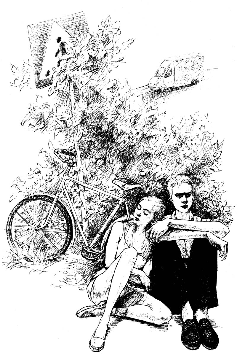 Он дожидается, пока Уна встанет и оботрёт лицо, и лишь потом трогается. Едет медленно, опасливо – даже вниз, под горку. Уна спускается за ним. Выпуклое круглое зеркало – осторожней на поворотах, эй! – отражает нескладную девочку с седыми волосами.