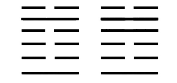 Символы читаются снизу вверх, они растут, как трава, от земли в небо. Не только конкретно эти, но и триграммы и гексаграммы тоже, все такие символы вообще. Так что всегда первая линия – это нижняя линия, а путь вверх описывает развитие, чередование Ян и Инь на этом пути.