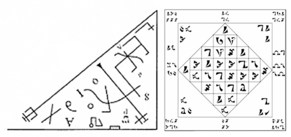 В этом можно увидеть нечто мистическое и сказать, что знания Енохианы не возникли сразу, лично для Ди и Келли, что они существовали и раньше, и кто-то что-то подобное уже получал, записывал, и внес это знание в таблицы Soyga. А можно сказать, что у Книги Речей Бога есть свой источник вдохновения, а любовь Ди к книге Soyga повлияла на вид его собственных работ. Выбирайте, что вам больше по вкусу.