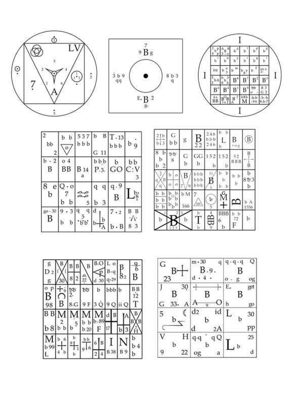 Вот над расшифровкой этих таблиц и бился Ди. И этот интерес явно повлиял на то, в каком виде позже будет получена Енохиана – в виде таблиц с буквами или сочетаниями букв и цифр. Продиктованная ангелами Книга Речей Бога, речь о которой еще пойдет, полностью построена в виде таких таблиц, а некоторые ее места копируют таблицы книги Soyga.