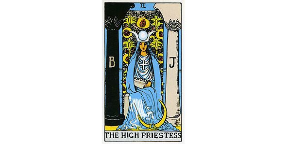 Первая дама в колоде. Кстати, обратите внимание – на первых картах изображены люди. Сначала по одному, потом появятся группы людей, но персонажи карт именно люди. Позже ситуация измениться и вы обнаружите, что в своей середине Старший Аркан меняется, карты становятся меньше похожими на характеры людей, более абстрактными, и с рисунков некоторых карт люди начнут пропадать. Пока же каждая карта изображает человека.