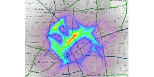 Так выглядит вероятная область проживания Джека Потрошителя в результате применения метода географического профилирования