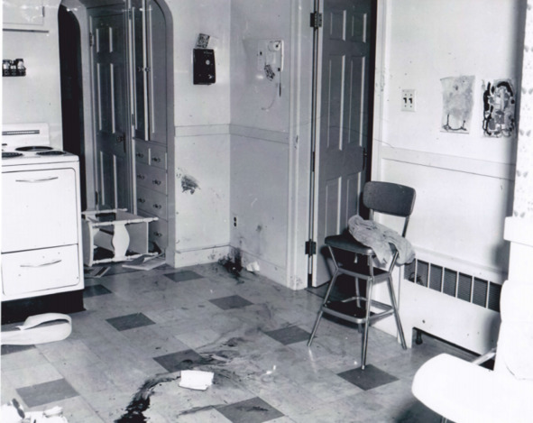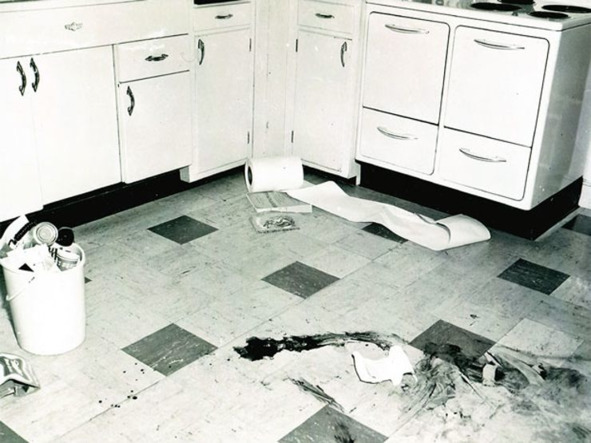 На фото прекрасно видна размазанная кровь и бумажное полотенце, которым пытались очистить пол кухни от крови.