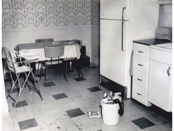 Трубка телефона была вырвана из стены и помещена в корзину для мусора. Телефонная книга была открыта в разделе номеров экстренных служб. Небольшой кухонный столик был перевернут.