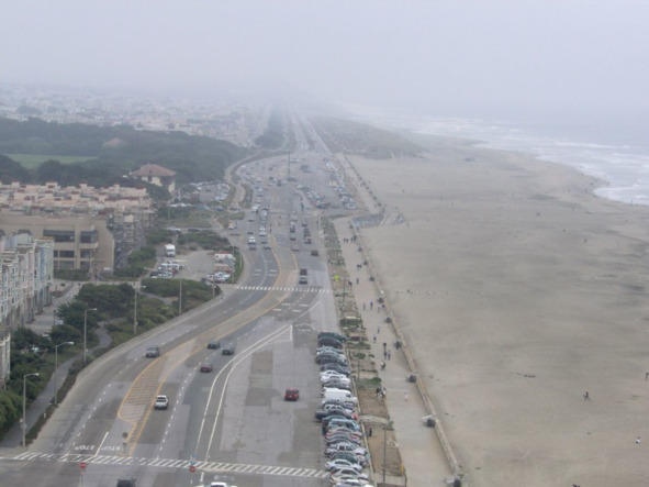 Пляж Ocean Beach. На фото видна автомобильная трасса «Великое шоссе», проходящая вдоль пляжа.