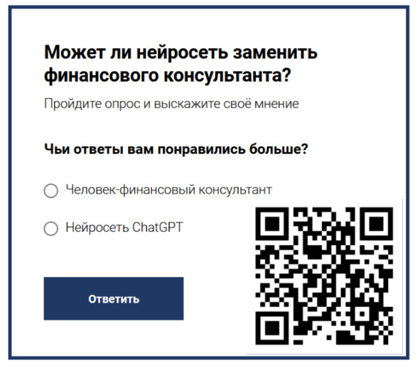 Определить победителя нужно вам, дорогие читатели. Переходите на страницу голосования по ссылке или QR-кодам, которые вы увидите на страницах этой книги. В опросе нужно ответить всего на один вопрос – чьи ответы вам понравились больше. Результаты голосования будут периодически публиковаться во всех социальных сетях моего проекта «Инвестиции для людей».