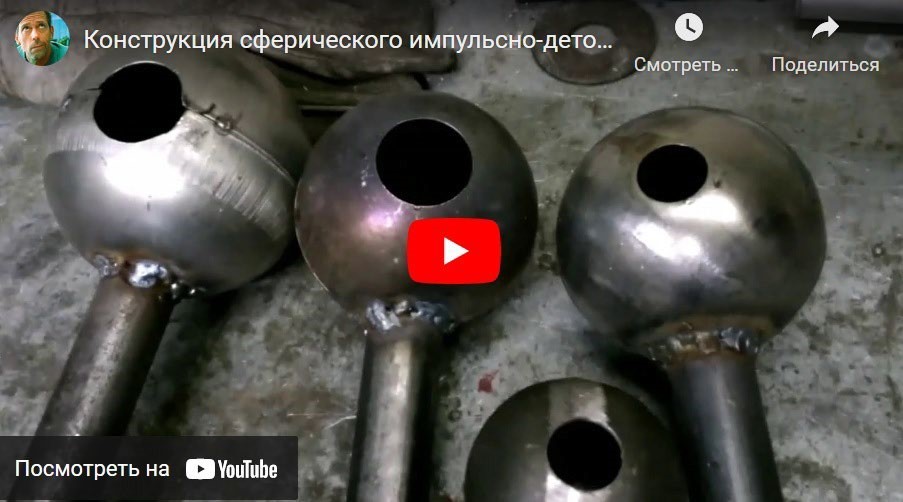 В качестве источника детонационной волны была использована стальная труба внутренним диаметром D1=20 мм, длинной L= 250 мм. На конце трубы установлен сферический резонатор диаметром D2=80 мм. Выходное сопло резонатора – диаметр D1=20 мм. Топливо – газовый баллончик туриста массой 220 грамм.