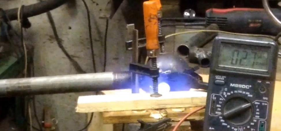 В эксперименте, см. рис. № 14 использовалась стальная труба внутренним диаметром 28 мм и длинной 0,3 м. Объём 0,14 литра. Топливовоздушная смесь формировалась классической газовой горелкой. Детонация топливовоздушной смеси осуществлялась пьезо-поджогом горелки. Электроды использовались различные – стальная, алюминиевая, медная спицы, спирали и т.п. Максимальный эффект приблизительно 0,07 литра горючего газа генерируют 0,1 вольта на электроде.