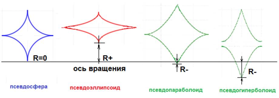 Они создаются так. Берется поперечное сечение псевдоповерхности второго порядка, полученное вращением образующей вокруг оси симметрии. Такое сечение похоже на четырёхконечную звезду с вогнутыми по законам окружности или параболы, или гиперболы или эллипса гранями.
