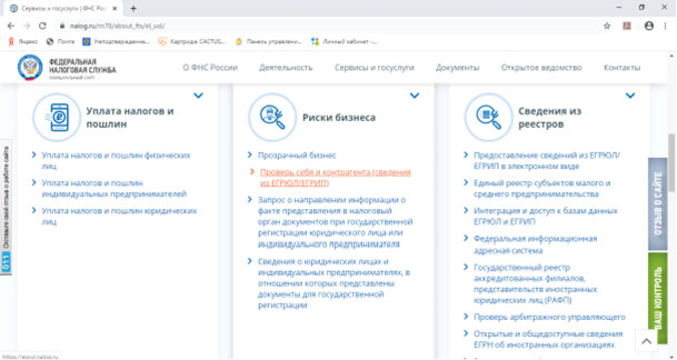 https://www.nalog.ru/rn78/about_fts/el_usl/ – вот ссылка. Есть разделы «Риски бизнеса» или «Сведения из реестров». Выбирайте любой, там есть вся информация.