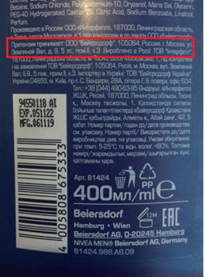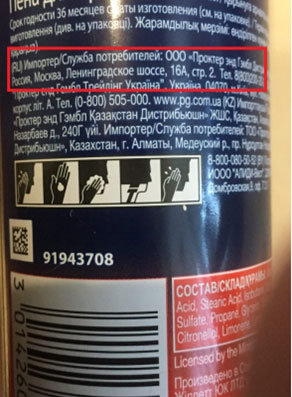 В статье 10 ФЗ «О защите прав потребителей» указано, что информация о товарах (работах, услугах) в обязательном порядке должна содержать: «адрес (место нахождения), фирменное наименование (наименование) изготовителя (исполнителя, продавца), уполномоченной организации или уполномоченного индивидуального предпринимателя, импортера; информация, предусмотренная пунктом 2 настоящей статьи, доводится до сведения потребителей в технической документации, прилагаемой к товарам (работам, услугам), на этикетках маркировкой или иным способом, принятым для отдельных видов товаров (работ, услуг)».