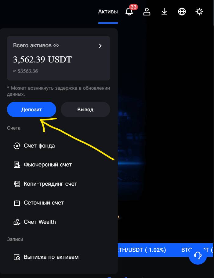 – пополнить депозит и начать торговать на СПОТе (без кредитного плеча);