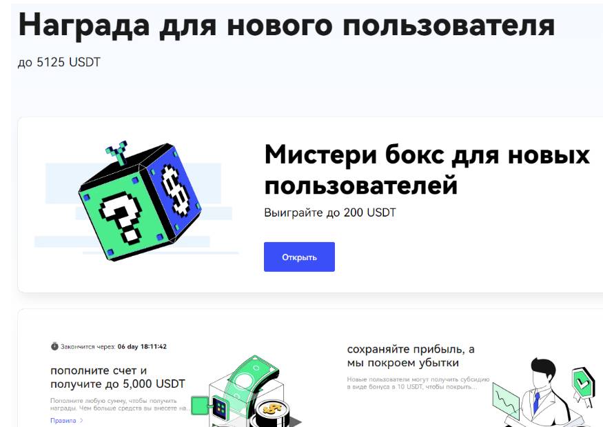 – Мистери бокс для новых пользователей с призом до 200 USDT.