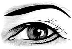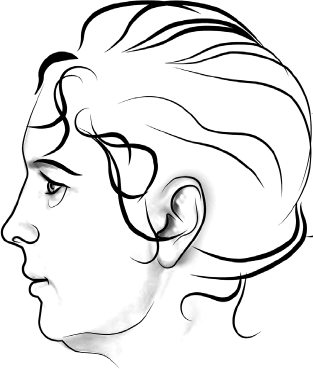 3. Височные части лба (с возрастом как бы вваливаются и бровь визуально стекает вниз).