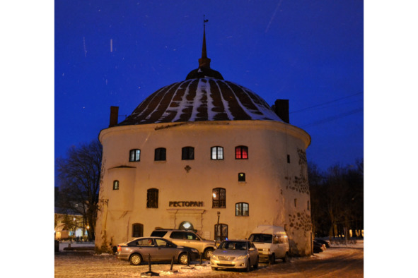 Следуя от вокзала к замку, невозможно пропустить Круглую башню. Даже не зная, что это за строение, вы точно обратите на него внимание. Осмотреть башню можно не только снаружи, но и изнутри. В ней находится ресторан, который так и называется – «Круглая башня». Это старейший ресторан Выборга, открытый в 1923 году. Лично я очень люблю такие исторические места. Интересно рассматривать внутреннее убранство и представлять, как в 20-х годах прошлого века здесь собирались весёлые компании финнов. Интерьер был восстановлен в 1976 году, когда ресторан вновь распахнул свои двери для посетителей после долгого использования в качестве склада.