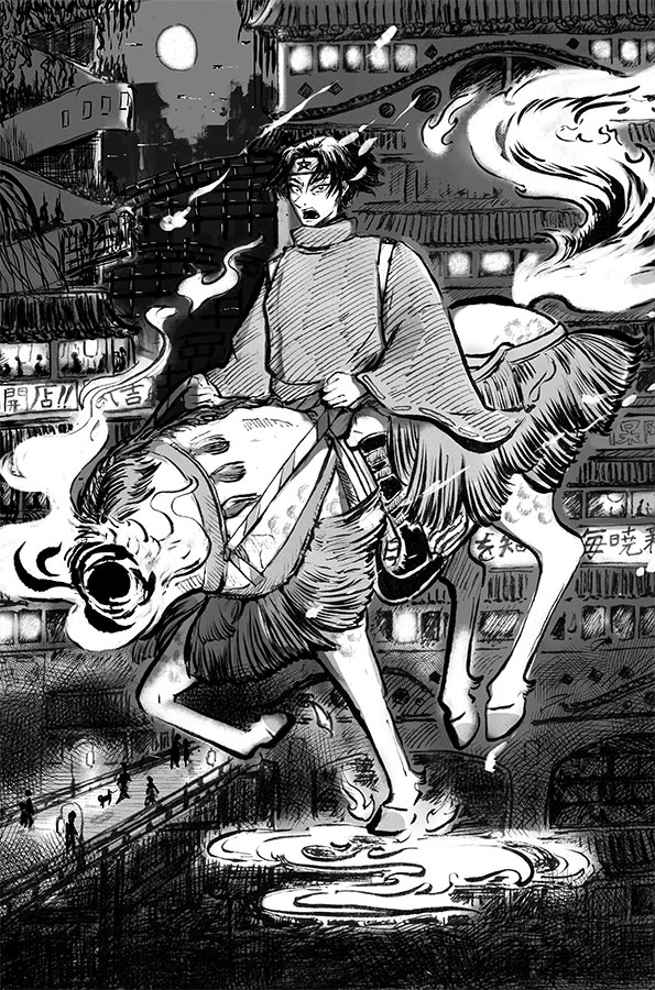 Не найдя никаких намеков ни на проклятие Дзуна, ни на его местонахождение, Хайо закрыла справочники. Она собрала свои и Мансаку важные документы и отправилась на мост встречать брата.