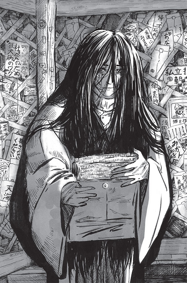Хайо подняла голову и обнаружила, что, пока ее спутник рьяно махал руками, его волосы раскинулись, как занавес, и открыли лицо. Его тоже покрывали грубые полосы шрамов, пересекая рваное ухо, точеный подбородок, высокие скулы и курносый нос. Шрамы расходились веером от уголков рта. Над глазами виднелись следы, будто кто-то пытался их выцарапать, будто толпа пыталась разорвать его на части голыми руками. На вид он казался моложе Мансаку, может, даже ровесник Хайо. Он таращился из-за своих круглых очков и быстро-быстро моргал – словно не мог поверить, что кто-то осмелился встретиться с ним взглядом. Однако лицо его было нежным. Изящным, словно драгоценный образчик каллиграфии. Да и в целом он производил впечатление практически противоположное тому, что создавал Сжигатель Тодомэгава.