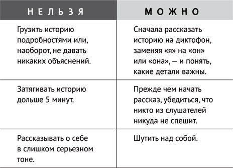 Может быть, вы даже ошибетесь с выбором истории в первый раз. Может, вас не будут слушать так внимательно, как хотелось бы. Но зато во второй раз будет уже лучше. А в третий еще лучше.