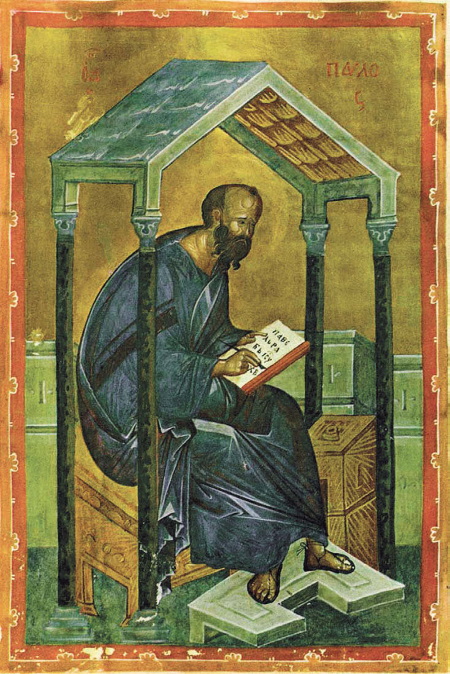 Ап. Павел. Миниатюра из Апостола. 1-я треть XV в. (ГРМ. Др. гр. 20. Л. 97 об.)