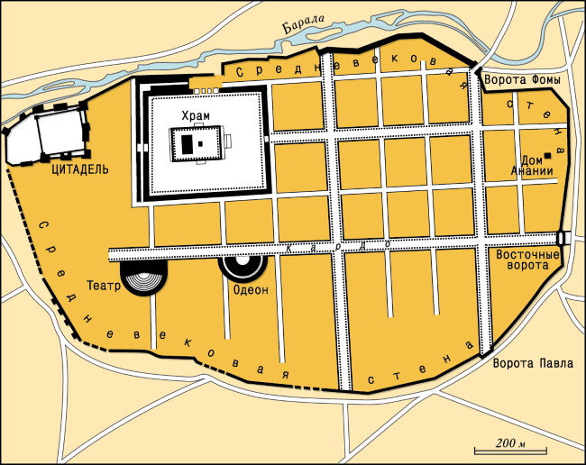 Эта информация косвенно подтверждается свидетельством самого Павла во Втором послании к Коринфянам: «В Дамаске областной правитель царя Ареты стерег город Дамаск, чтобы схватить меня; и я в корзине был спущен из окна по стене и избежал его рук» (2 Кор. 11:32). Однако если в рассказе Деяний инициаторами планируемого убийства Павла представлены иудеи, то Павел говорит о правителе Арете – языческом царе соседнего Набатейского царства[92] – как об инициаторе его ареста. Арета IV правил Набатейским царством с 9 по 40 годы. Управлял ли он Дамаском в тот период, когда Павел оказался там, или же под его контролем находилась только торговая колония набатеев, остается не вполне ясным: ученые высказывают разные точки зрения[93].