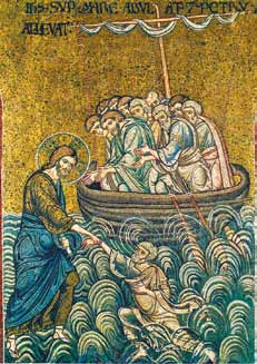Хождение по водам. Мозаика собора Санта-Мария Нуова в Монреале, Сицилия. Между 1183 и 1189 гг.