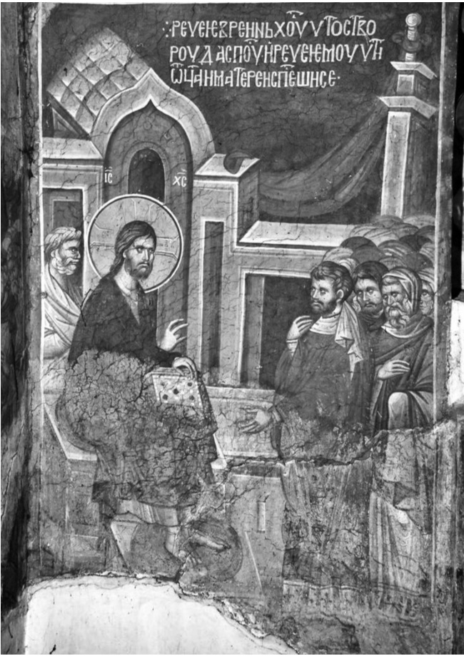 Христос и богатый юноша. Фреска. Монастырь Грачаница, Сербия. XIV в.